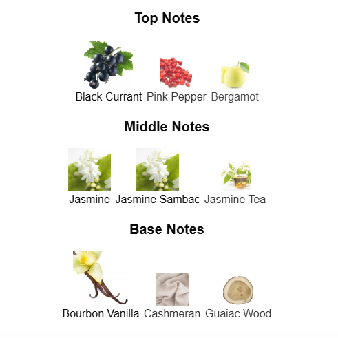 "A Couture elegance made of 3 Jasmine flowers and accords, blended with Vanilla Bourbon, one of the most expensive ingredients in modern perfumery. This is twisted with a cool facet made of Pink Pepper and a Woody overdose, which gives this couture feminine fragrance a modern edge. A self-celebration of my roots, my values and my personality. "