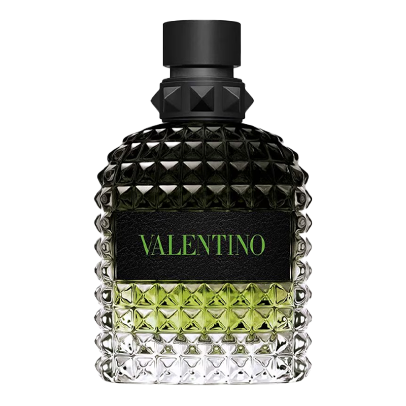 Born In Roma Uomo Green Stravaganza Eau De Toilette is encased in an eye-catching bottle that pays homage to the iconic Valentino Rockstud. Inspired by the timeless architecture of Rome, the bottle's pyramid shape is a hallmark of Maison Valentino. Adorned in bold black leather and vivid green, the bottle radiates the passion, audacity, and lavishness synonymous with Valentino. It visually represents the fragrance's lively character and unique style.